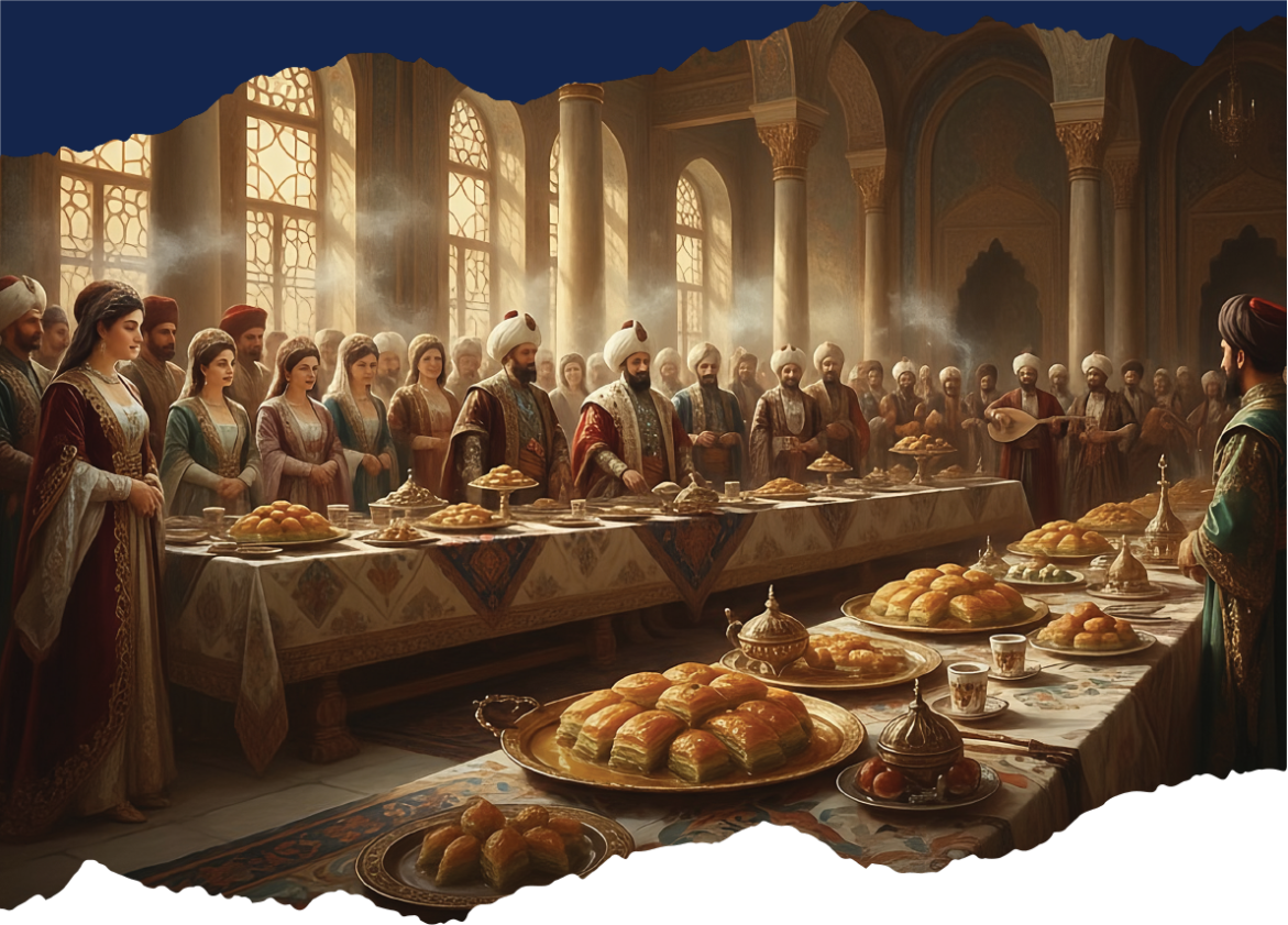 باقلوا از دل دربارهای باشکوه عثمانی زاده شد؛ شیرینی‌ای ظریف، لایه‌لایه و چشم‌نواز که در هر برش آن ردّی از هنر، صبر و ظرافت آشپزی شرقی موج می‌زند. در کاخ‌های مجلل استانبول، باقلوا تنها یک دسر نبود؛ بلکه نشانی از شکوه، آداب مهمان‌نوازی و فرهنگ پذیرایی مردمان آن دوران به شمار می‌رفت.در آن روزگار، استادان شیرینی‌پزی با دقت و وسواس، ساعت‌ها وقت صرف می‌کردند تا خمیرهای نازک و مغزهای معطر را در کنار یکدیگر بنشانند و از دل آن، اثری خلق کنند که برازنده دربار سلطان باشد. در روزهای ویژه و جشن‌های سلطنتی، سینی‌های بزرگ باقلوا با احترام، موسیقی، لباس‌های تشریفاتی و نظم خاصی به سمت قصر حمل می‌شد؛ آیینی که به «رژهٔ باقلوا» شهرت داشت و نشانی از وفاداری، عظمت و شکوه پادشاهی عثمانی بود. امروز نیز باقلوا، فراتر از یک شیرینی ساده، یادآور اصالت، ذوق و مهربانی مردمان شرق است؛ لذتی که در هر لایه‌اش، ردی از تاریخ، هنر، عشق و احترام به مهمان نهفته است.